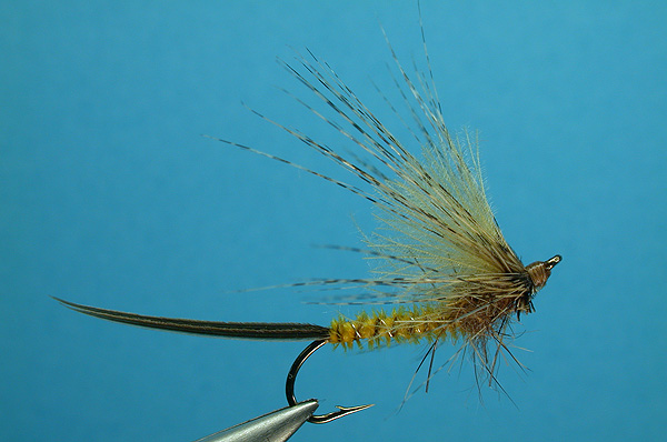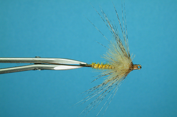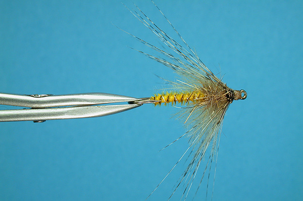 | Thorax: | hare dubbing dyed yellow |