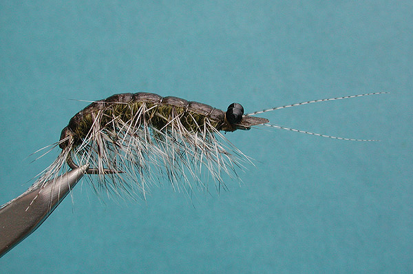 | Legs: | Grizzly hackle, or olive dyed CDC |