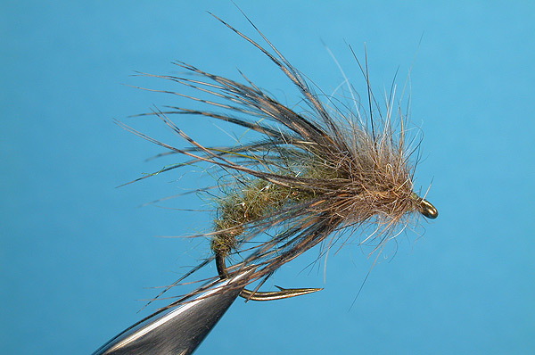 | Abdomen: | Blended Olive dubbing , spun on olive silk ( Leisenring's method ) |
