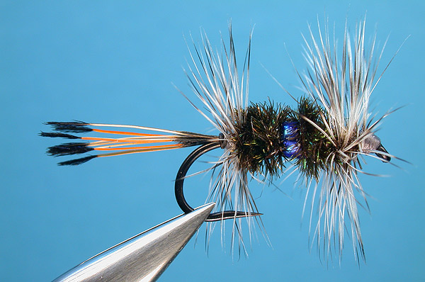 Note: Contemporary material upgrade to an exceptional freestone stream attractor dry fly; in classic fore & aft hackle pattern form.