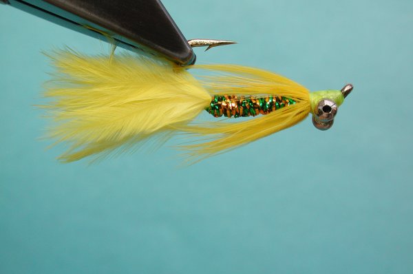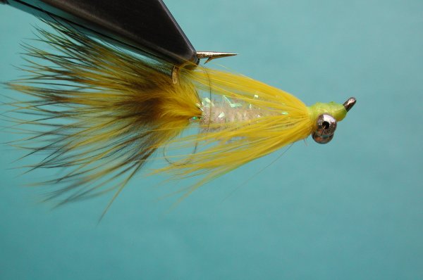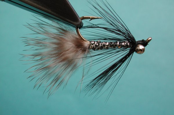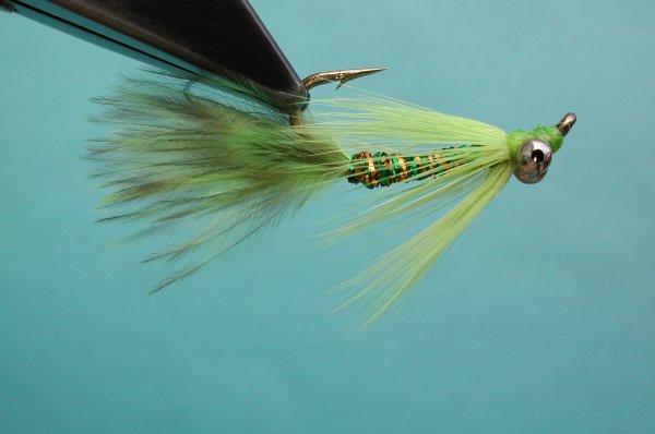 | Tail: | short marabou, grizzly marabou , from the butt of the grizzly saddle |