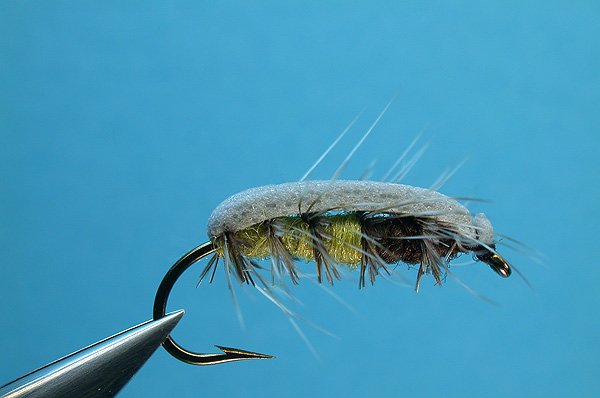 | Abdomen: | Light olive or yellow Flyrite dubbing |
