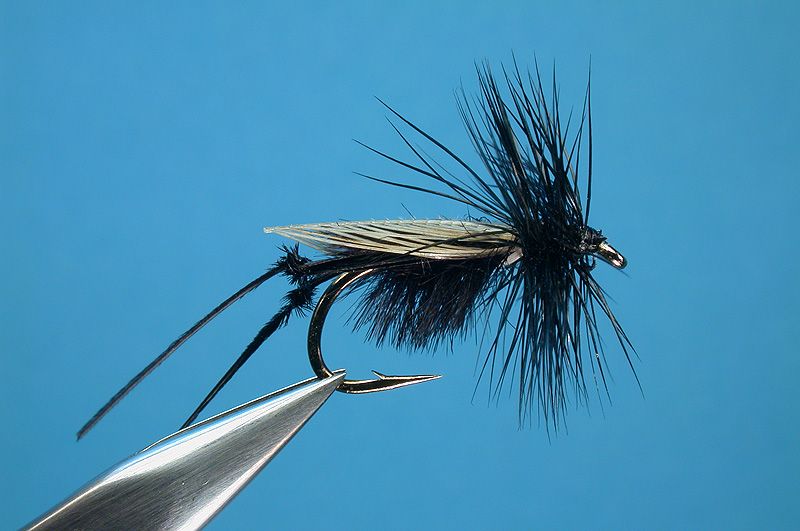 White cock tied in reverse hackle flatwing method