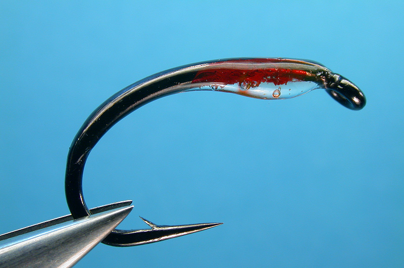 A spot of red marker pen on the hook before applying the Sally