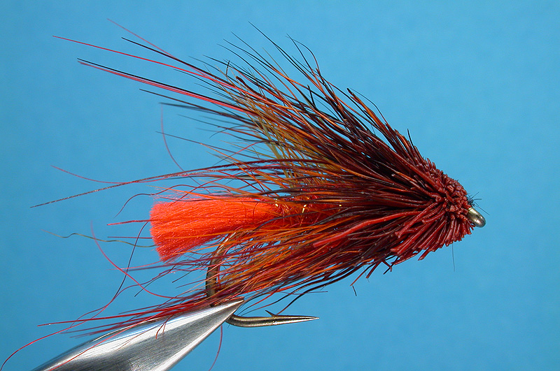 | Head: | Deer hair 'Blood red' |