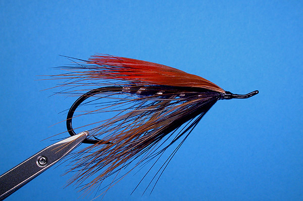 | Wing: | two golden pheasant red breast feathers, tied low & flat |