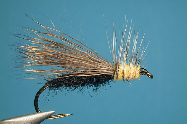 | Hackle: | Grizzly dry fly hackle palmered in 5-6 open turns over the thorax and clipped flush on the bottom |