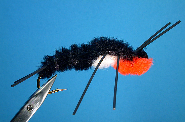 Note: This fly was invented by a very gifted tyer from Idaho Falls named James Bowen. The fly is pretty straightforward, except for the ball of orange McFly Foam tied on the underside of the fly at the head. |