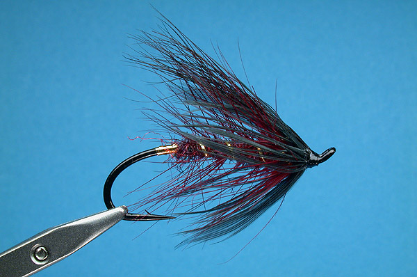 Pattern information: The counter-ribbed tinsel is optional if you think the stem of your hackle will hold up. Keeping the body slim is crucial because the palmered Claret hackle provides a "glowing" silhouette. The body dubb here is Burgundy Iridescent Dubbing by Ronn Lucas, Sr. The colour Claret has been regarded as an excellent colour for Salmon flies for centuries. Today, however, there are few patterns that include this shade. This pattern follows the basic design of the classic "Claret and Black" Trout wet fly with a few changes to make it more palatable to the larger anadromous species. It works well in all seasons, and has been particularly useful in cloudy water on a wet-fly swing. During the summer, using this fly on a riffling hitch can sometimes be as close to a certain thing as you can get. |