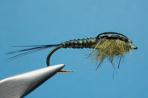 | Abdomen: | Olive or brown thread 8/0 ribbed with black 3/0 galaxy wonder thread (teeth resistant ;-)) |