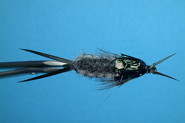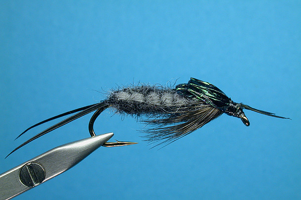 | Body: | Bow Tyer Saltwater Llama – black & gray, spun into dubbing noodles and woven with overhand knots |