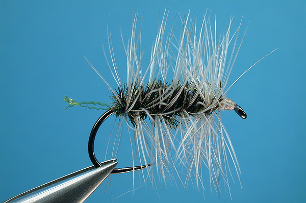 Note: In a moment of laziness I played around with this very catchy pattern to see how much simpler it still could be. I ended up winding all 2 strands of peacock and the hackle around the thread and than wind this on to to the hook. It actually works. Amazing to me as it seems too easy almost.