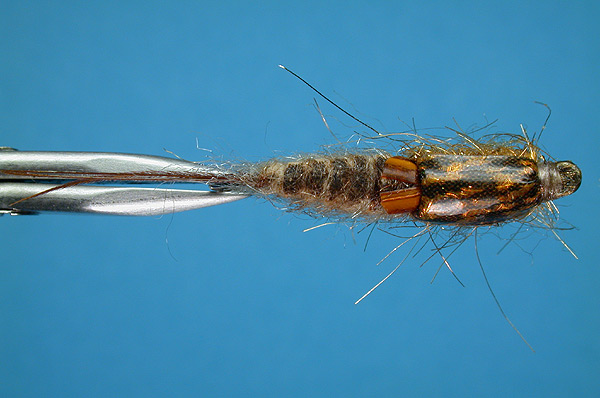 | Hook: | Partridge H1A #14 (the shank is bent up 20 degrees, one third behind the eye) |