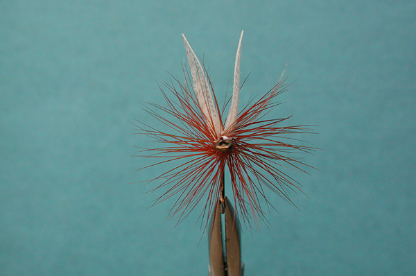- Now for the rest of the dressing (start with the tail), and those wings are a great post for parachute style hackling.