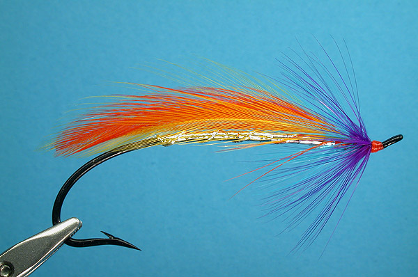 | Wing: | two blue hackles tied in tented over the body, with two yellow hackles tied over |